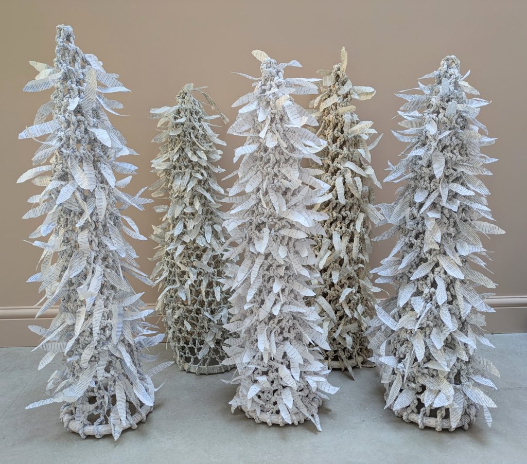 Three weeks to go until Dictionary opens, and one of my pieces is finished (more or less). “Lost in Translation” (above) is a series of five towers, about 75cm high, made by looping with cordage made from English-foreign language dictionary pages. Every so often, when joining in a new strip of paper, I left the […]
